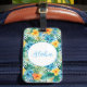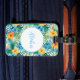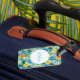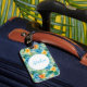 Custom luggage tag shown with a very tropical Hawaiian print with Aloha text.