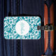 Custom luggage tag shown with a very tropical Hawaiian print with Aloha text.