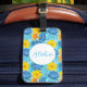 Custom luggage tag shown with a very tropical Hawaiian print with Aloha text.