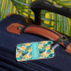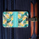 Custom luggage tag shown with a very tropical Hawaiian print with text.