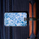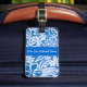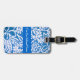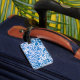 Custom luggage tag shown with a cute blue coloured hawaiian print with text. Customise this tag or buy as is.