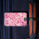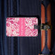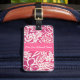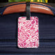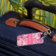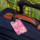 Custom luggage tag shown with a cute pink coloured hawaiian print with text. Customise this tag or buy as is.
