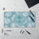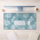 Bring tropical vibes to your home or office with this classic Hawaiian-inspired desk mat design. Featuring lush white palm trees silhouetted against a summery background in shades of teal, this pattern captures the timeless beauty of island life. This versatile design adds a cheerful touch of the tropics to any room. Customise the pattern size and personalise text to make it uniquely yours. Search ID1093 to see other products with this design.