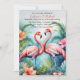 Hawaiian Pink Flamingo Hibiscus QR Code Wedding Invitation