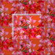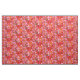 Hawaiian plumeria flowers pattern fabric. The material is covered in tropical flowers in varying shades of pink, over a bright orange background colour.