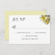Tropical plumeria flower wedding reply cards. White paper with yellow and white flowers. Names of the bride and groom as well as wedding date is at the top.