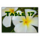 Tropical flower table number card with plumerias from Hawaii. Pretty yellow and white blossoms with green foliage. Double sided design.