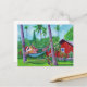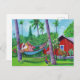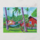 Send a little Mele Kalikimaka greeting with this fun postcard featuring Santa on Vacation on the island of Kauai surrounded by beautiful tropical foliage a plantation cottage and even a crowing rooster!