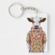 This design features a portrait of cow in summer shirt with a Hawaiian lei.