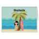 This sunny and bright island beauty design features a cute Hawaiian girl and her pink floral surfboard. The ocean calls this little girl, as she is ready to surf the island waves on this beautiful and sunny beach. This tropical island theme is the perfect design for your little one’s birthday luau and hula.