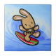 Hawaiian Surfing Bunny Holiday Cartoon Tile