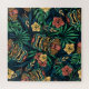 Hawaiian tropical patterns embrace tiki masks and hibiscus flowers in a colourful vintage dance.