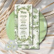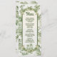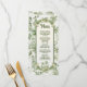 Hawaiian Toile de jouy Wedding Menu with hula girl, palms, pig, and hut. All wording can be changed. Colours of green and light cream