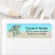 A fun illustration of a tropical Hawaiian shirt with a floral palm tree pattern . The background is a sandy beach with pretty blue ocean waters. Personalise this beachy cheerful label with your name and address.