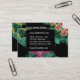 Bold, colourful tropical flowers and bright green jungle leaves contrast the black background of this fully customisable business card template. From yellow to hot pink and orange colours is perfect for professional executives, consultants, or makeup artists, entertainers, performers, self-employed artists and designers, volunteers for non-profit groups, etc, etc, etc.
