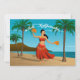 In our vintage Hawaiian postcard celebrating the holidays, this lovely hula girl is dancing a traditional Tahitian hula. She tells the story of aloha with her hands and her hips and wishes you a Mele Kalikimaka (Happy Holidays). And as the palm trees sway to the balmy breezes on Waikiki Beach, Diamond Head is seen in the background.