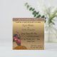 Tropical theme wedding invitation. Rich gold tone background with vintage style hula dancer art.
