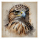 A Hawk in a detailed watercolor with expressive eyes is portrayed against a soft, blurred background. The natural colours enhance the lifelike appearance.
