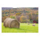 Hay bales and fall foliage on farm, photo print