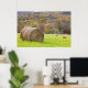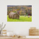 Hay bales and fall foliage on farm, poster