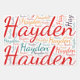 Hayden. Show and wear this popular beautiful female first name designed as colourful wordcloud made of horizontal and vertical cursive hand lettering typography in different sizes and adorable fresh colours. Wear your positive american name or show the world whom you love or adore. Merch with this soft text artwork is a great present, not only in womens history month, or birthday gift.