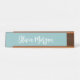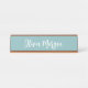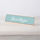 Elegant desk nameplate features your name, title, or choice of personalisation in white hand scripted cursive lettering on a dusty teal background.
