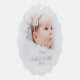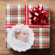 Perfect for new parents, this Christmas ornament features your own photo and personalised text. Change the text and upload your photo right on the product page! The front of the ornament will be your uploaded photo with a personalised name and year, and the back will be your choice of text around a holiday wreath. The greeting currently says "Baby’s First Christmas" and can be customised, also right on the product page. This ornament card includes a hazy effect around the edges of the photo; try it out yourself and upload your own photo to see the effect.
