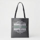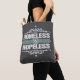 Make a statement of compassion with our stylish tote bag! The powerful message 'Homeless doesn't mean Hopeless' reminds us that every person deserves hope, regardless of their circumstances. Use this bag to carry your belongings while spreading a message of hope and solidarity with those who are experiencing homelessness. It's a simple way to make a big impact.
