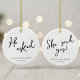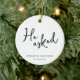 He Asked She Said Yes Calligraphy Engaged Ceramic Ornament