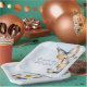 Declare your love and capture the charm of nature with our enchanting wedding butterfly "he gives me butterflies" bridal shower plates. Hand-painted watercolor butterflies bring to life a captivating display of rich colour. Beautiful tones of beige, warm brown, terracotta rust, teal blue, and cream create a sense of cosy elegance. A soft, dusty blue watercolor wash provides the perfect backdrop. This design perfectly embodies the essence of the nature, inviting your guests to celebrate your love story amidst its beauty. Created by Simply Farmhouse Press.