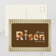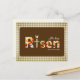 Featuring inspirational Bible Verse Matthew 28:6 “He has Risen.” in a classic brown color palette, the Cross, as well as floral pattern embedded in the letters, this Religious Easter postcard is perfect for sending love and joy to your family, friends and loved ones, especially Christians.