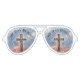 He Has Risen Rugged Cross With Clouds Aviator Sunglasses