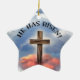 He Has Risen Rugged Cross With Clouds Ceramic Ornament
