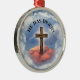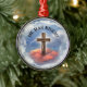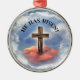 He Has Risen Rugged Cross With Clouds Metal Ornament