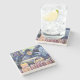 The coasters are gorgeous, a quality feel and heavy weight. They look like a precious archeological find. A rustic stone juxtaposed with a modern floral black and white print. I like the way the print goes slightly imperfect on the cut stone edges giving them a kind-of natural beauty.