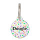 Pronoun dog tag with rainbow sprinkle confetti in pastel colours. Put your “pet’s” name on the other side.