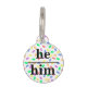 He him pronoun and Name Round Pet Tag