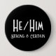 Express your true self in cool, classic and modern style with the HE/HIM Strong and Certain Round Black Button! Easily personalise by adding an image or changing the text and background colours. And create your own personalised button and stylish customised gifts for any occasion!