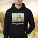 This beautiful Christian hoodie features a soft, painterly Easter scene divided into elegant vertical panels, showcasing a peaceful hilltop cross surrounded by blooming spring flowers. The inspiring scripture message “He is not here. He is risen.” with the reference Matthew 28:6 is placed below the artwork, creating a meaningful and visually calming faith statement perfect for the Easter season.
