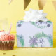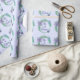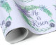 He is Risen. Beautiful religious scripture Easter party wrapping paper with a beautiful floral wreath of purple and green on a pastel background for a Christian gift.
