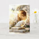 This Easter card features a beautiful and serene depiction of the empty tomb of Jesus Christ. The stone entrance is open, with radiant golden light streaming out, symbolising the resurrection. The tomb is surrounded by blooming flowers, including daisies, adding to the sense of new life and hope. Above the tomb, the text "He is Risen" is elegantly written, capturing the essence of the Easter celebration.
