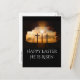 Elegant modern design—Illuminated Cross on Calvary. Happy Easter, He Is Risen. Easter Sunday Church Services Invitation Postcard Mailers.