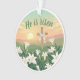 Celebrate the true meaning of Easter with this beautiful keepsake ornament that features a beautiful watercolor resurrection morning sunrise, A cross draped with a white cloth and lily of the valley flowers. There is also text that reads, " He is risen." All text on the back can be edited and personalized with your own message or omitted.