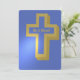 He is Risen Gold Lit Christian Cross Blue Easter Holiday Card