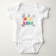 I ordered an all-cotton T-shirt with the same logo for myself and one for the newest addition to my extended family. The T-shirt arrived first, but I left on vacation before the baby's all-cotton onesie was delivered to me. After I returned home, I feared that the newborn for whom it was intended may have already outgrown it; but, fortunately, that was not the case as you can see from the photo. The printing and colors turned out just as I envisioned them: perfection.