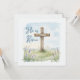 This watercolor Easter greeting card features a rustic wooden cross standing gently at the center, surrounded by soft green grass and delicate purple hyssop flowers beneath a light blue sky with faint clouds. The nostalgic hand-painted style and subtle paper texture create a peaceful, faith-filled atmosphere that beautifully reflects the message, “He Is Risen.” Perfect for sending heartfelt Easter wishes to family, friends, church members, or loved ones, this card is ideal for personal gifting, church distributions, Easter Sunday services, or ministry outreach. You can customize the inside message with your own scripture, family name, or personal note to make it uniquely meaningful.