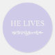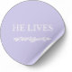 A minimalist Christian Easter sticker featuring the declaration He Lives.