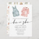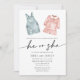 He or She Boho gender reveal invitation, featuring watercolor clothes, and earthy tones. This stunning collection is perfect for celebrating the gender reveal in style and elegance.