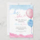 He or She Cute Pink & Blue Balloons Gender Reveal Invitation