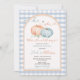 He or She Pumpkin Blue Gingham Arch Gender Reveal Invitation